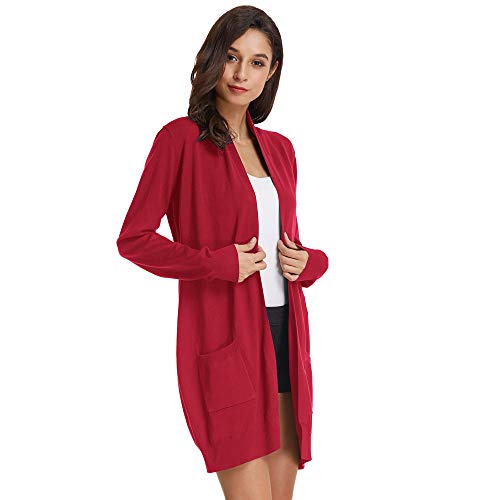 GRACE KARIN Cardigan Nero Elastica Donna Cardigan Manica Lunga Casual Primavera Estate Rosso 3XL