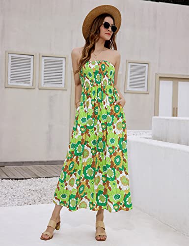 GRACE KARIN Vestito Floreale da Donna Senza Maniche a Vita Alta Vestito Elastico con Scollo Quadrato Verde S