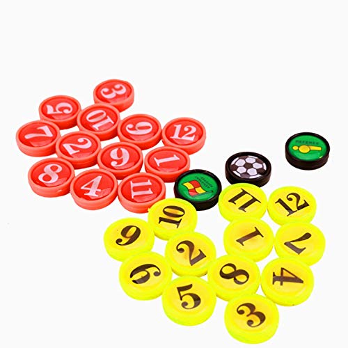Viene fornito con un set di 24 marcatori magnetici rappresentano giocatori di calcio, 1 pennarello, 1 gomma e 1 cartella tattica doppia faccia.