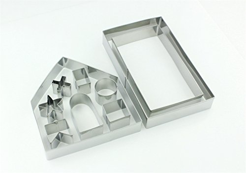 Gracelaza Set di 10 formine per biscotti in acciaio inox per casa di pan di zenzero natalizio, stampi da forno in metallo