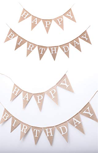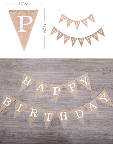 Gracelaza 13 pz/2 m 'Happy Birthday' bandierine di lino in tela di iuta bandiera tessuto ghirlande bandiere triangolo double face chiffon vintage chic decorazione per festa di compleanno #5