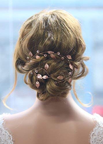 Gracewedding, accessorio per capelli stile rametto di foglioline, da matrimonio, stile vintage, dimensioni molto lunghe, colore oro rosa con foglioline e strass, 38 cm