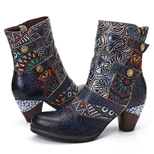 Gracosy Stivaletti Donna Chelsea Pelle Basso Blocco Tacco Corti Stivali Autunno Inverno retrò Boemo Neve Stivali Antiskid Giunzione Stile Cerniera