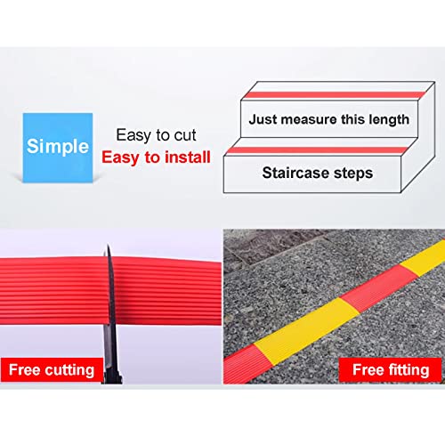▶ Istruzioni per l'imballaggio e il trasporto: questo rivestimento antiscivolo per paraurti per scale è facile da tagliare! Quando ricevi la striscia adesiva piegata, non devi preoccuparti, devi solo usare un asciugacapelli per riscaldare la striscia adesiva per appiattirla, quindi incollarla