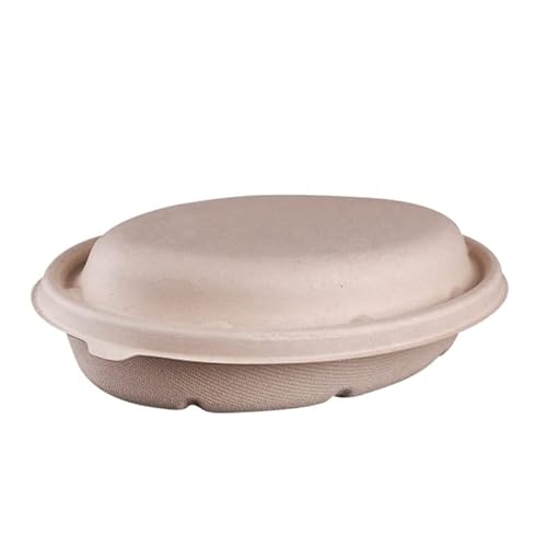 Gradisco - Vaschetta ovale in Polpa di cellulosa Compostabile con Coperchio in rPET 100% riciclato - Contenitori asporto in Bagassa rigido e resistente con coperchio ermetico (100)