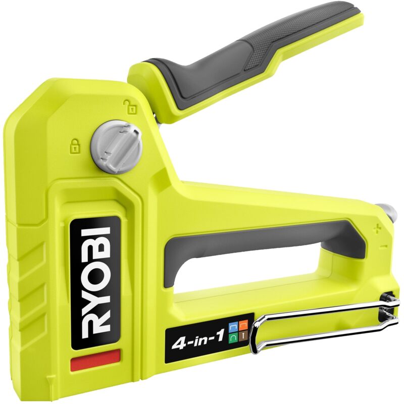 Graffatrici Ryobi RHFST4IN1, 4in1 leggera e resistente con caricamento posteriore, ideale per lavori di tappezzeria, isolamento, decorazione ecc. Include 72 pezzi di graffette altamente resistenti.
