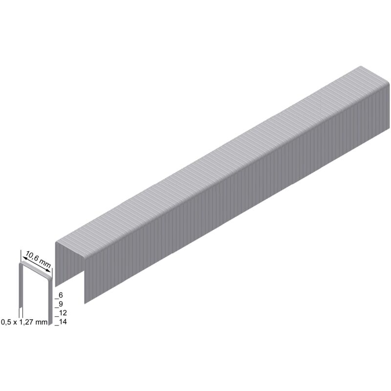 Graffe Prebena tipo PF16CNK Larghezza del dorso: 10,6 mm Lunghezza della graffa 16 mm Dimensione del filo 0,5 x 1,27 mm Finitura zincato Pezzi/scatola 3.000 Peso per scatola 0,56 kg Unità di imballaggio 1 x 3.000 -- I punti metallici Prebena PF da 6 a 16 mm - dimensione del filo: 0,5 x 1,27 mm - larghezza del dorso: 10,6 mm sono compatibili, tra gli altri, con i seguenti dispositivi o sistemi: BeA - 11 Bosch - Bosch 57 Haubold - KL 1100 Holzher - L Kihlberg - 695 KWB - KWB 057 Lux - Lux 80-84 Novus - G Paslode - 11 Rapid - 4 / 11 / 140 Senco - ZH06BAA - ZH 09BAA Würth - Morsetti per ST 11 + 54...