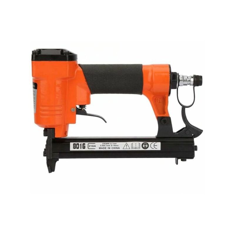 Descrizione prodotto GRAFFETTATRICE AD ARIA COMPRESSA PNEUMATICA 6-16mm FALEGNAMERIA 8016 Spillatrice ad aria compressa molto utile per il fai da te, indispensabile anche in campo professionale per diversi settori in particolare per falegnami. Realizzata con materiali selezionati e studiati per durare nel tempo. Funziona con qualsiasi tipo di compressore grazie al suo attacco universale. Le misure delle graffette utilizzabili sono 6-16 mm CAPACITA' DEL CARICATORE 140 PEZZI LEVA DI SGANCIO RAPIDO DEL CARICATORE A SLITTA INNESTO DEL TUBO ARIA AD AGGANCIO RAPIDO