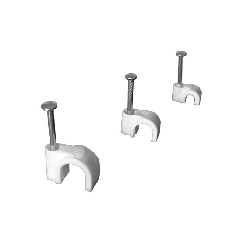Graffette Fissacavo Tonde - Conf.50 Pz Ø6/7 mm Mod. CE40/3 SKU: CE40/3 Materiale: Termoplastico Altre Caratteristiche: Con chiodi in acciaio nichelato preinfilati Colore: Bianco Tipo di Confezione: Blister Garanzia 24 mesi