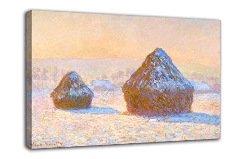 Grafic Quadro Covoni, effetto di neve, il mattino - Claude Monet - stampa su tela canvas con o senza telaio (QUADRO CON TELAIO IN LEGNO, CM 130X84)