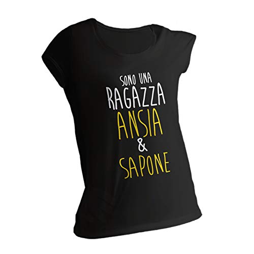 Graficamente - Maglietta Ansia & Sapone - Tshirt Idea Regalo Gadget (Nero, M)