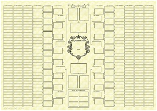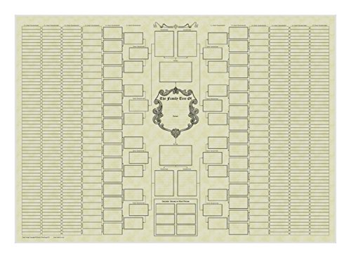 Grafico albero genealogico, a farfalla, per 10 generazioni, su carta pergamena