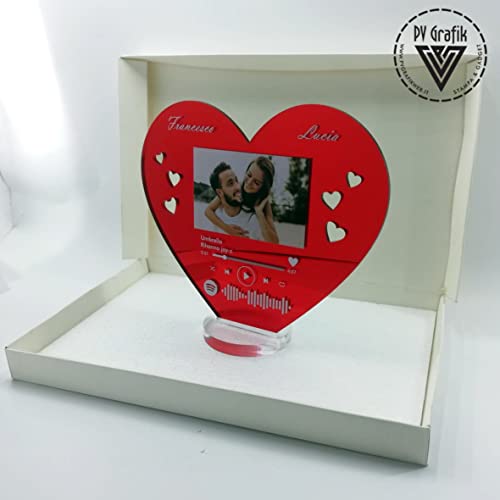 PV Grafik Targa Spotify Cuore Personalizzata,Regalo Fidanzata,Regalo Fidanzato,San Valentino Personalizzato,incluso scatola per confezione regalo (Rosso Specchio)