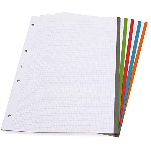 Include ricambio di 100 fogli a quadretti da 5 mm, 90 g e strisce laterali colorate.