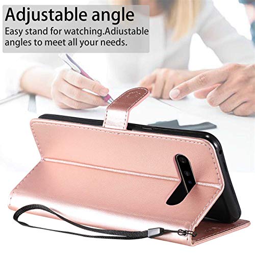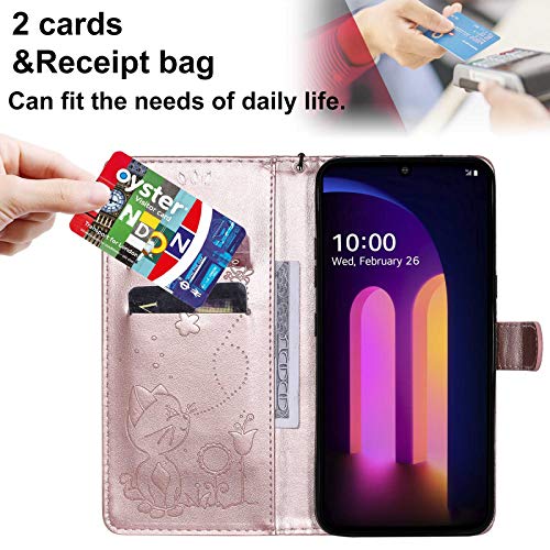 The Grafu Cover LG V60 / V60 ThinQ, Portafoglio Custodia in PU Pelle con Slot Carte, Magnetica Flip Full Body Protezione Cover per LG V60 / V60 ThinQ, Oro Rosa