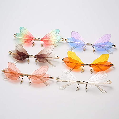 Grainas Occhiali da Sole a Farfalla libellula Occhiali da Sole Senza Montatura in metallo senza cornice occhiali (Giallo Rosa)