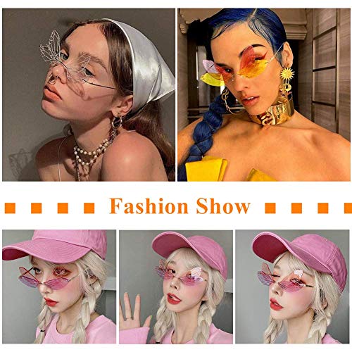 Design unico: questi occhiali da sole a farfalla senza montatura con design personalizzato e vari colori, facili da abbinare a diversi stili di abbigliamento, permettendoti di goderti il fascino del retrò, mantenendo anche la tua collezione di occhiali fresca e aggiornata.