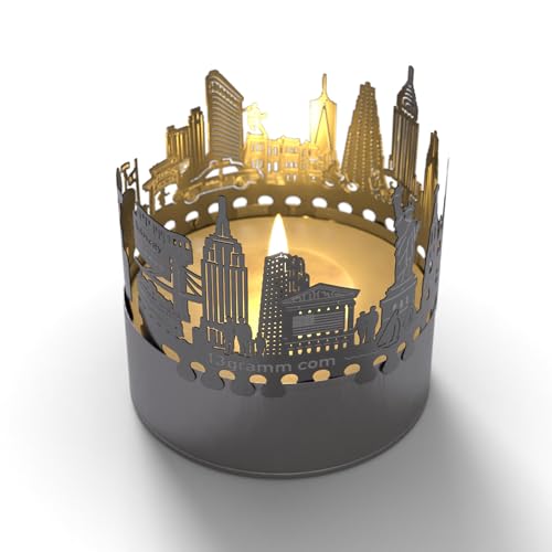 13 grammi, candela votiva dello skyline di New York, souvenir regalo votivo, silhouette in acciaio inox 3D per una luce del tè biglietto di auguri incluso
