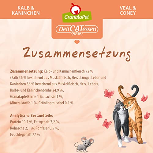 GranataPet Delicatessen Vitello & Coniglio, 6 x 800 g, Cibo umido per gatti, cibo per gatti per buongustai, cibo senza cereali e senza zuccheri