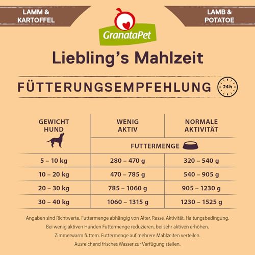 Contenuto della confezione: 6 scatolette da 400 g di Liebling's Mahlzeit carne di agnello e patate, cibo umido naturale per cani adulti di GranataPet