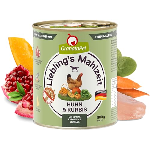 GranataPet Liebling's Mahlzeit carne di pollo e zucca, cibo per cani, cibo umido per cani, scatolette per cani senza cereali e zuccheri aggiunti, alimento cani completo, 6 x 800 g