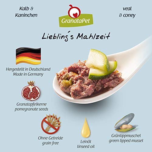 GranataPet Liebling's Mahlzeit - Cibo umido per cani con vitello e coniglio, senza cereali e senza zuccheri aggiunti, cibo completo, 6 x 400 g