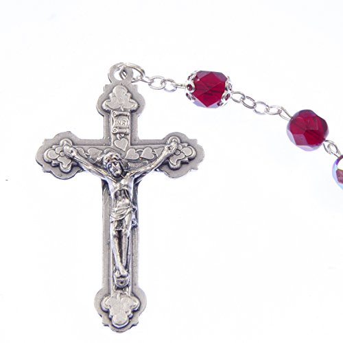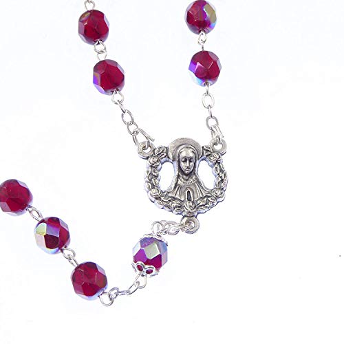 Granato Rosso Colore Vetro Ultra Resistente Iridescente Rosario in Scatola Regalo