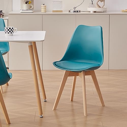 GrandCA HOME Set di 8 Sedie Imbottite per Sala da Pranzo Con Gambe in Legno Massello di Faggio, Adatte per Sala da Pranzo, Soggiorno, Cucina, Camera da Letto, Verde inchiostro