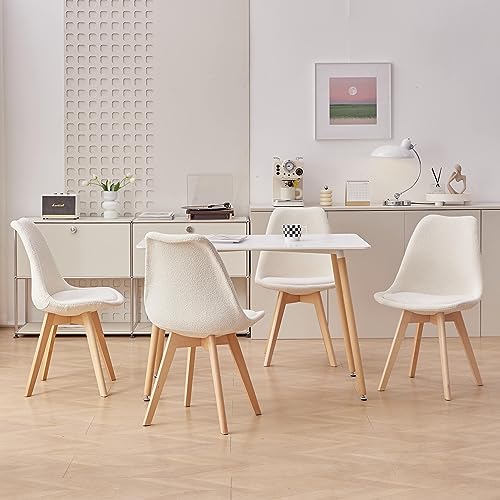 GrandCA HOME Set di 4 Sedie da Pranzo Scandinave con Cuscino di Seduta Staccabile in Flanella e Gambe in Legno di Faggio, per Soggiorno, Sala da Pranzo, Cucina, Beige