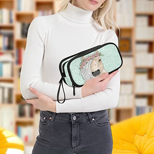 Grande astuccio per matite a forma di cavallo borsa portatile per cancelleria da ufficio borsa per trucco per scuola media e studenti universitari ragazze ragazzi, Multicolore, Taglia unica, Borsa