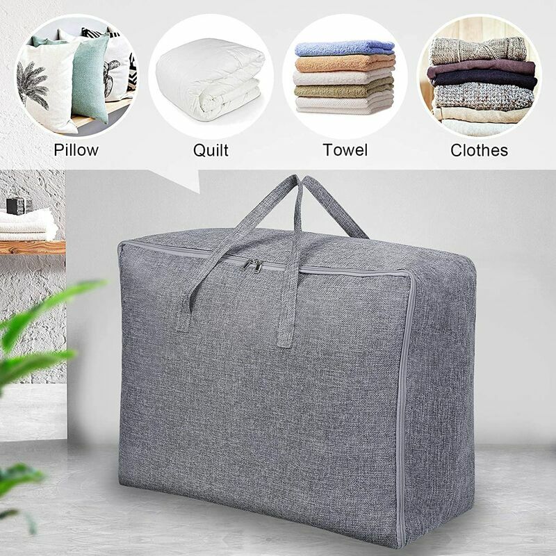 ✔ 【Borsa portaoggetti extra large 85L】 Borsa portaoggetti da 2 pacchi 64 * 47 * 30 cm, molto adatta per oggetti ingombranti. È spazioso per le tue trapunte stagionali, vestiti, trapunte, lenzuola, cuscini, coperte, vestiti, maglioni, ecc. Rendi la tua stanza ben organizzata. cotone e lino di alta qualità, è più morbido e più traspirante del tessuto oxford e più forte e più resistente del tessuto non tessuto, rendendolo una scelta ideale per riporre i vestiti. È lavabile. Ma per prolungarne la durata, si consiglia il lavaggio a mano o con la spazzola anziché in lavatrice. ✔ 【Manico rinforzato e coperchio con doppia cerniera】 Un comodo e robusto coperchio con doppia cerniera può impedire l'ingresso di polvere e acqua nella custodia . Manico push-pull cucito con punto croce, facile da spingere e tirare;