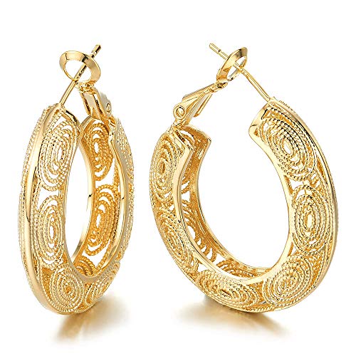 Grande Colore Oro Statement Dichiarazione Orecchini, Hohl Filigrana Cerchio, Stile Retrò, Festa Ballo Abito da Sera