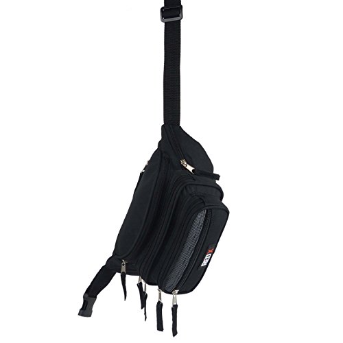 RED X Grande Marsupio Viaggio Utility Practical Handy Fanny Confezione Vita 7 Tasche - Nero, One Size