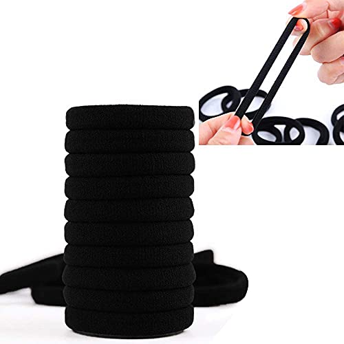 Grande Nero Elastico Elastici per Capelli,50 Pezzi Elastici per Capelli di Cotone Bande Corda di Ponytail Fermacoda per Capelli Spessi Pesanti e Ricci,Nero