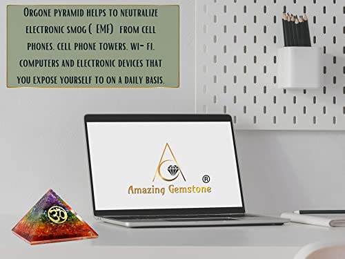 Grande piramide d'orgono | Cristallo Piramide Sette Chakra Onxy | Piramide di Orgonite | Guarigione dall'energia positiva delle piramidi di organi (OM (SMALL))