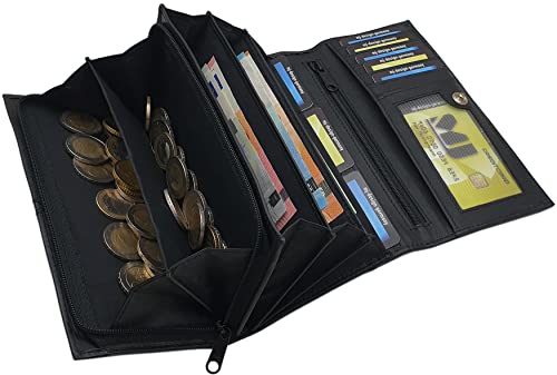 Grande portafoglio pelle di vitello per donna con protezione RFID e NFC (Nero)