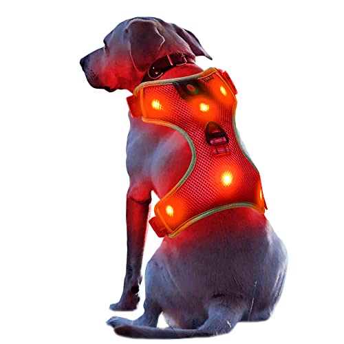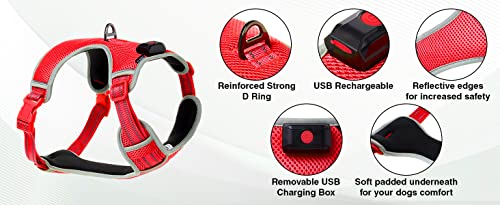 Grande Rosso Imbracatura Cane Ricaricabile USB Luci Led Pettorina Luminosa Per Cani Accendersi Cane Luminoso Lampeggio Cane Imbracatura Hi Vis Cane Gilè Giacca Dog Anti Tiro Sicurezza Imbracatura