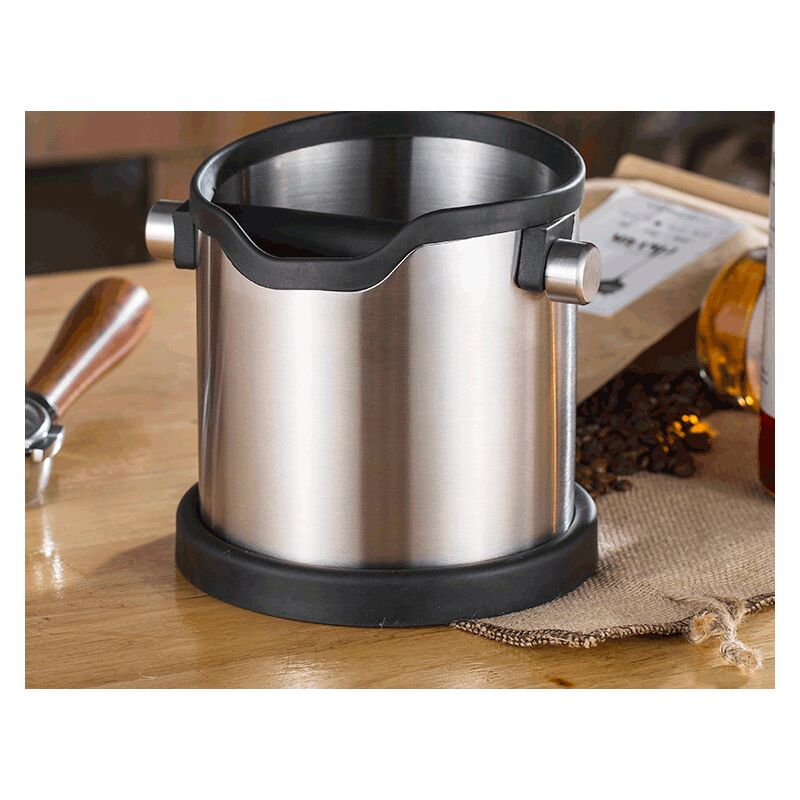 Colpisce per il suo acciaio inossidabile e il silicone di alta qualità. È più grande delle tipiche hit box e può contenere fino a 15-20 modelli di portafiltro senza doverlo svuotare continuamente. Uno degli accessori da caffè più utili per il tuo caffè espresso. &: Il fondo del contenitore dei fondi di caffè non scivolerà né graffierà il bancone della cucina. L'intero cestino del caffè può essere facilmente smontato e pulito sotto l'acqua corrente o in lavastoviglie, rendendo il contenitore del caffè davvero facile da usare. per la tua cucina o il tuo bar. Metti semplicemente i tuoi dischi di caffè in questo secchio. Il knock box in acciaio inossidabile è un vero e proprio colpo d'occhio e un must per ogni amante del caffè e barista. Una scatola per espresso che potrebbe essere uno degli accessori per il caffè di casa o un utile strumento per la scatola del caffè.: Usiamo acciaio inossidabile e silicone di alta qualità (non plastica) che non importa quanto duramente colpisci, questo