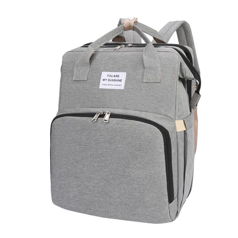 Zaino/borsa mamma multifunzionale con funzione nanna - grigio Questo zaino è stato creato per le mamme moderne che sono sempre in movimento. Dispone di pratici scomparti, tra cui uno spazio per riporre diversi biberon di cibo o bevande per il bambino, una tasca per le salviette umidificate a cui puoi accedere senza dover estrarre l'intero zaino e uno scomparto principale per riporre oggetti più grandi. Questo zaino è estremamente versatile e ti permette di fornire al tuo piccolo un posto dove riposare durante i viaggi, grazie al mini lettino da viaggio integrato. Il suo design multifunzionale ti consente anche di usarlo come borsa o borsa per passeggino Caratteristiche del prodotto: Lettino da viaggio integrato: la caratteristica più importante di questo zaino è il lettino da viaggio integrato, che fornisce un posto comodo dove dormire il tuo bambino. in viaggio Tasca per Salviettine Umidificate: Ha una comoda tasca per le salviettine umidificate, così sono sempre a portata di mano e