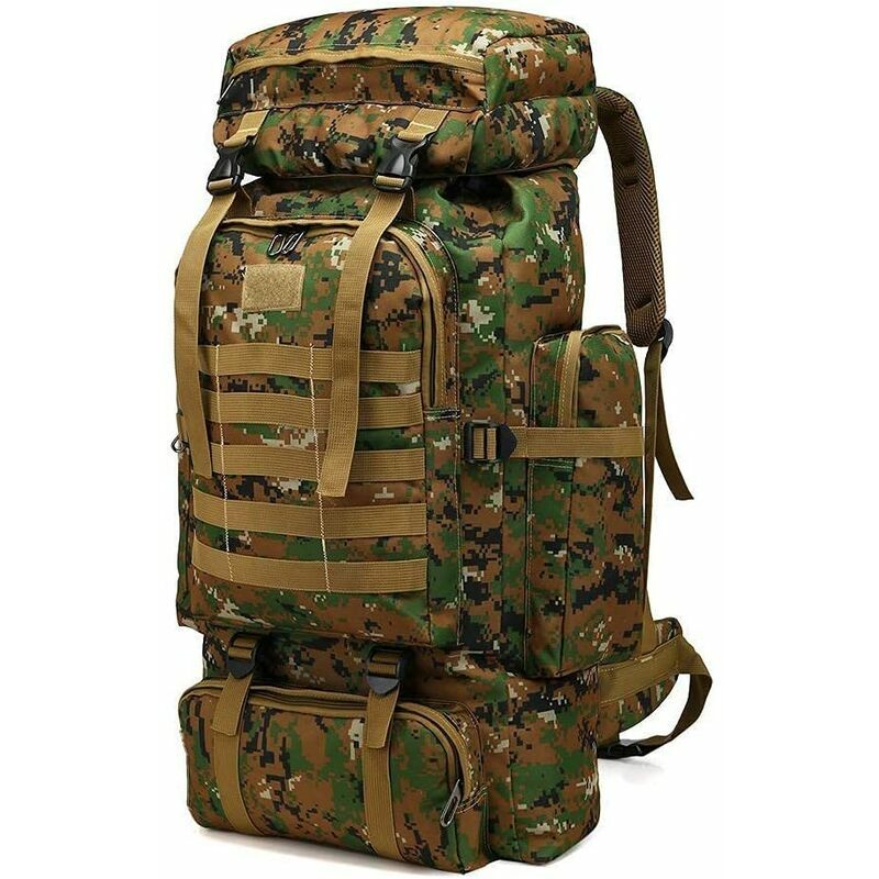 Struttura dello zaino da escursionismo: lo zaino da campeggio ha una grande capacità di 80 litri, un ampio scomparto, un sacco di spazio in modo da poterlo mettere in sacco a pelo, tende, amaca o scarpe e una piccola valigia, uno scomparto per laptop, una tasca frontale con cerniera e due tasche laterali per bottiglia d'acqua o ombrello. Tessuto di alta qualità: lo zaino ha #39;