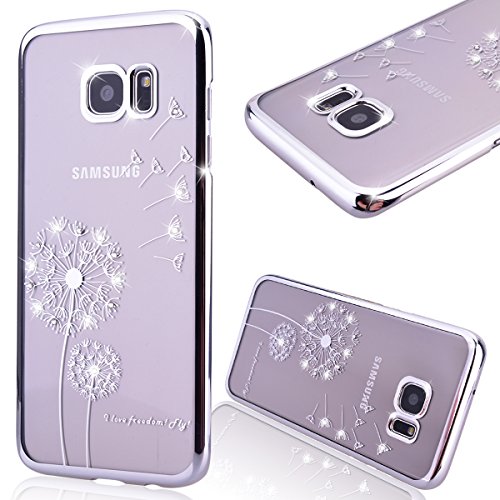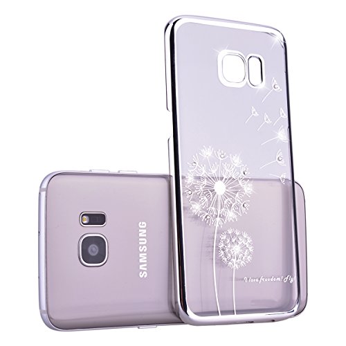 GrandEver Cover Diamante Cover Rigida per Samsung Galaxy S7 Edge Glitter trasparente farfalla bling Rhinestone cristallo custodia Crystal Retro Cover rigida trasparente Bumper Back Cover pittura floreale - farfalla rossa