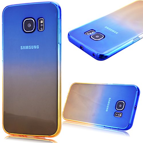 GrandEver Custodia TPU Gel Silicone per Samsung Galaxy S6 Edge Cover Morbida Fit Ultra Sottile Silicone Flessibile TPU Gel Shell Protettiva TPU Case Resistente ai Graffi Anti Scivolo Case Posteriore Della Copertura Della Protezione Anti-urto Samsung Galaxy S6 Edge - Blu Giallo Gradient