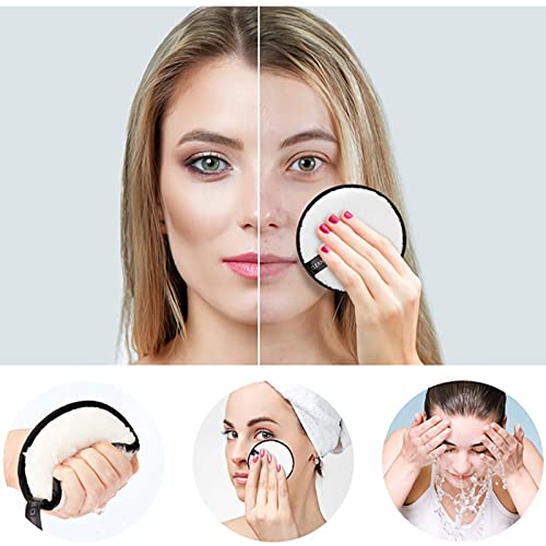 Grandi Dischetti Struccanti Lavabili,Microfibra Dischetti Cotone Riutilizzabili,Dischetti Struccanti Riutilizzabili Con Borsa della Lavanderia,Fascia Capelli e Pennello Maschera,7 Pezzi(4+3)