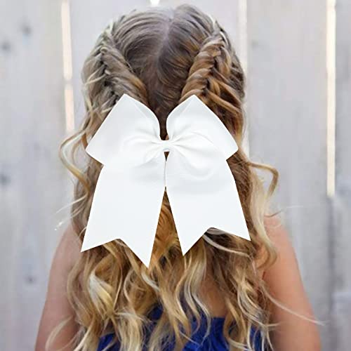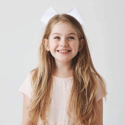 Grandi Fiocchi per Capelli con Nastro, 2 Pezzi Fiocchi Elastici in Nastro Bianco per Capelli da Ragazza, Natale, Cheerleader (18 cm)