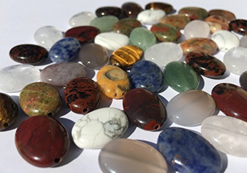 Mix di Grandi Pietre semipreziose e perlacee, 48 Pezzi 18 mm ovali Pietre curative Gemme Pietre preziose Pietre perlacee Perle semipreziose Perle per bricolage Avventurina Verde Ossidiana