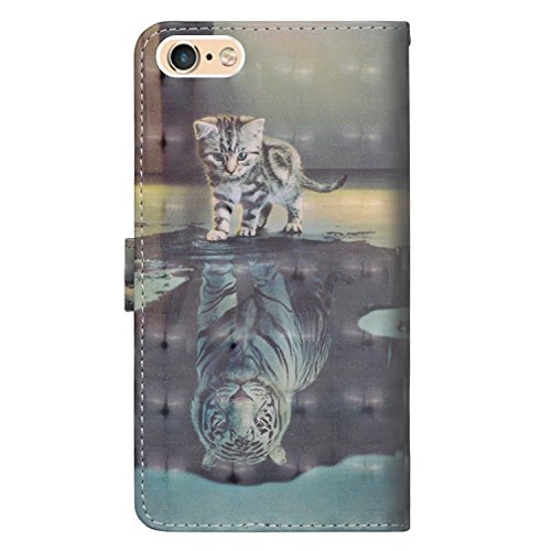 Grandoin Cover iPhone 6S Plus/ 6 Plus, Custodia Retro Flip Case Portafoglio 3D Disegni Cover in con Chiusura Magnetica + TPU Silicone Posteriore per Apple iPhone 6S Plus/ 6 Plus 5.5" (Gatto E Tigre)