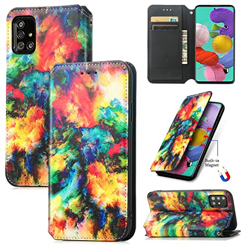 Grandoin Cover per Samsung A51 4G, Custodia a Libro in Pelle Protettiva Magnetica Portafoglio Galaxy A51 4G Cover con 2 Slot per Schede Kickstand Flip Caso per Samsung Galaxy A51 4G (Iridescente)
