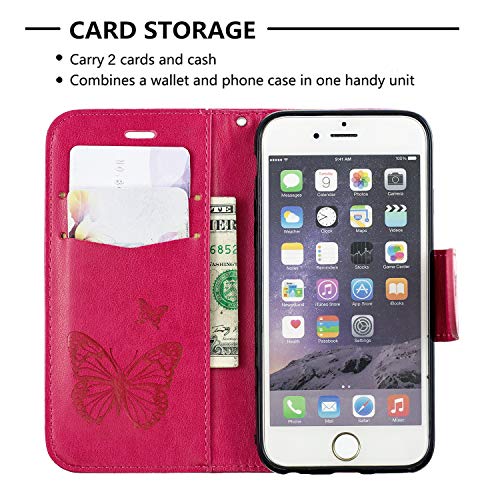 Grandoin Custodia per iPhone 6 / iPhone 6S, Custodia Retro a Libro Flip Case Portafoglio Farfalla Print 3D Disegni Cover in Pelle Wallet per Apple iPhone 6 / iPhone 6S (4,7") - Rosa Rossa