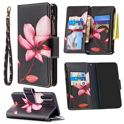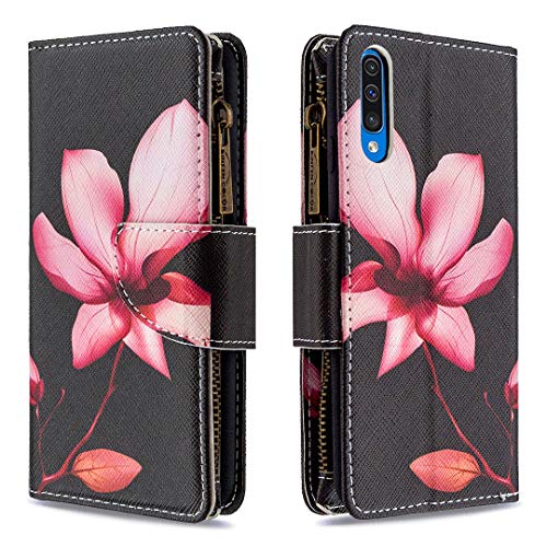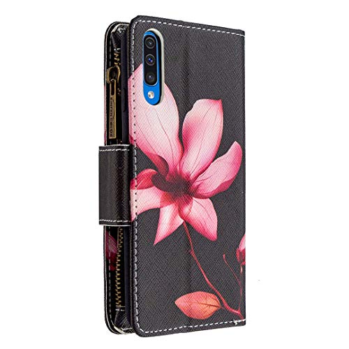 Grandoin Custodia per Samsung Galaxy A50, Creativo Colorato Custodia Retro Cerniera Flip Case Portafoglio Pelle Wallet Magnetica Supporto Cover Cassa Protettiva (Loto)