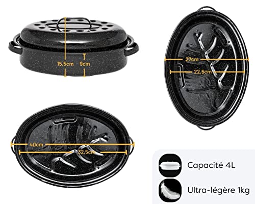 GRANITEWARE - Casseruola Roaster in acciaio smaltato - Formato medio - griglia in acciaio inox + ricetta